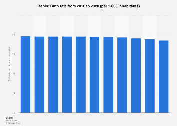 Learn more about how Statista can support your business. Request webinar World Bank. (March 1, 2023). Benin: Birth rate from 2010 to 2020 (per 1,000 inhabitants) [Graph]. In Statista. Retrieved ...
